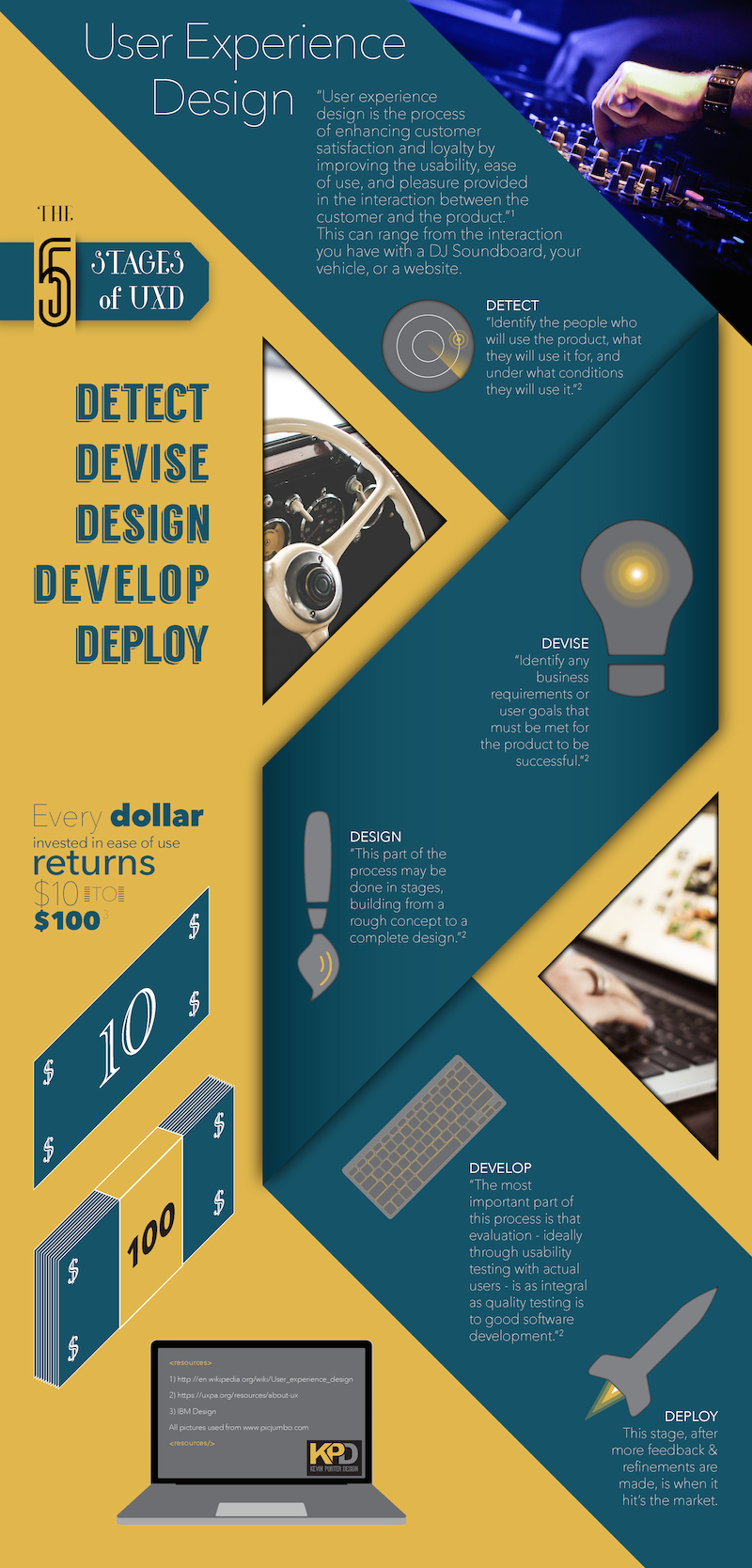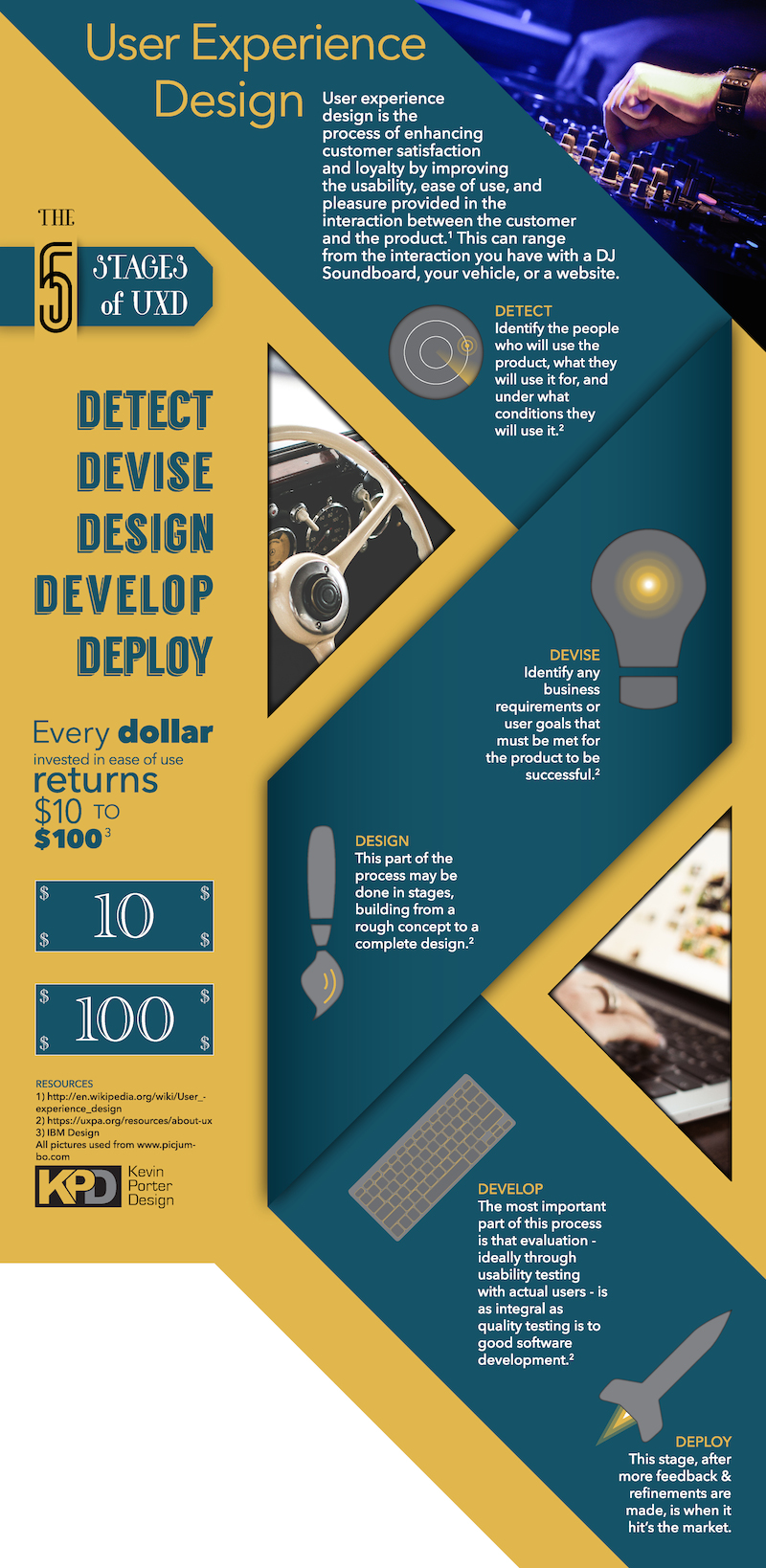 This is the final composition of our work. Our objective was to create an infographic based on a topic we are interested in. It would have to have at least one type of chart in it and at least three vector graphics. The topic I chose was the general process of user experience design, UXD. I chose this because this is a field I am interested in going into, and therefore I wanted to learn a little more about it.